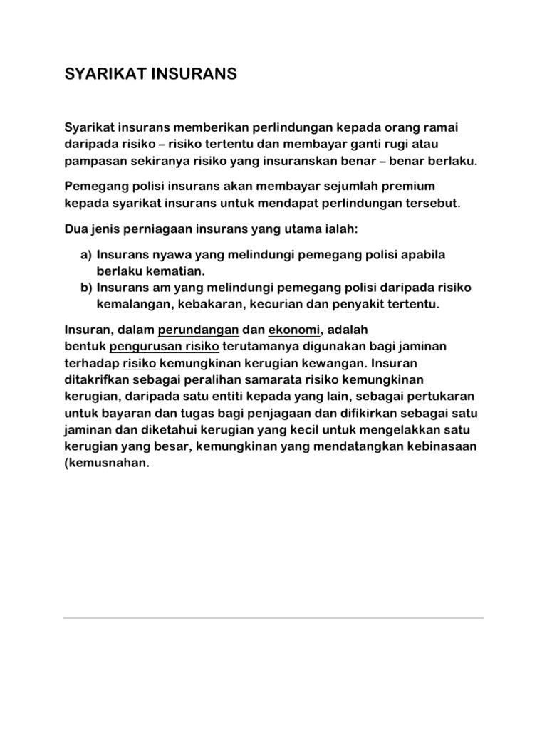 Ii yang tentangnya notis telah diberikan di bawah mana-mana. Potensi peluang perniagaan insurans di Malaysia semakin tinggi dengan hasil tinjauan yang membuktikan bahawa. Syarikat itu telah menjalankan perniagaan menulis polisi insurans selama lebih 200 tahun.